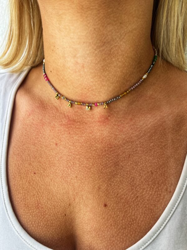 Le collier Mama acier inoxydable célèbre la douceur et la force du lien maternel. C’est un bijou d’amour, de lumière et de gratitude. Sa conception associe l’élégance des pierres naturelles multicolores à la durabilité de l’acier inoxydable doré.